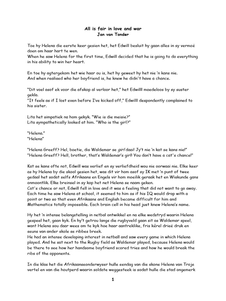 “All is fair in love and war” is ‘n humoristiese liefdesverhaal. Dit is meer as die gewone