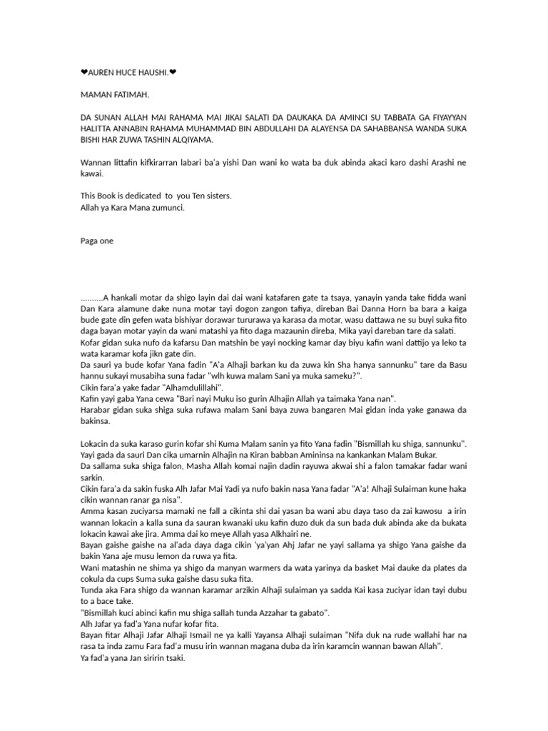 Kofar gidan suka nufo da kafarsu Dan matshin be yayi nocking kamar day biyu kafin wani dattijo ya leko ta