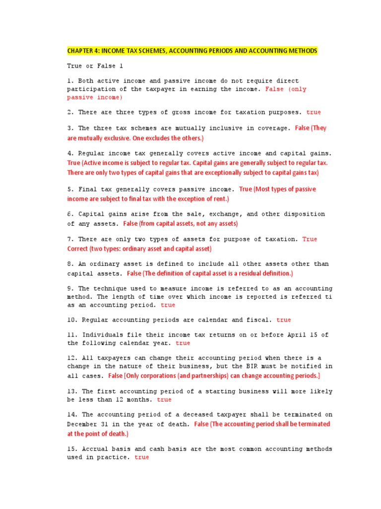 Chapter 4: Income Tax Schemes, Accounting Periods and Accounting Methods