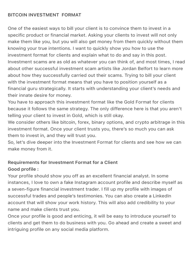 Bitcoin Investment Format