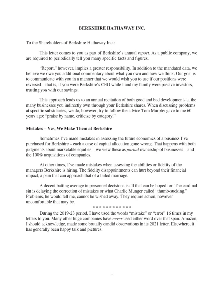 I should acknowledge, made some brutally candid observations in its 2021 letter. Elsewhere, it