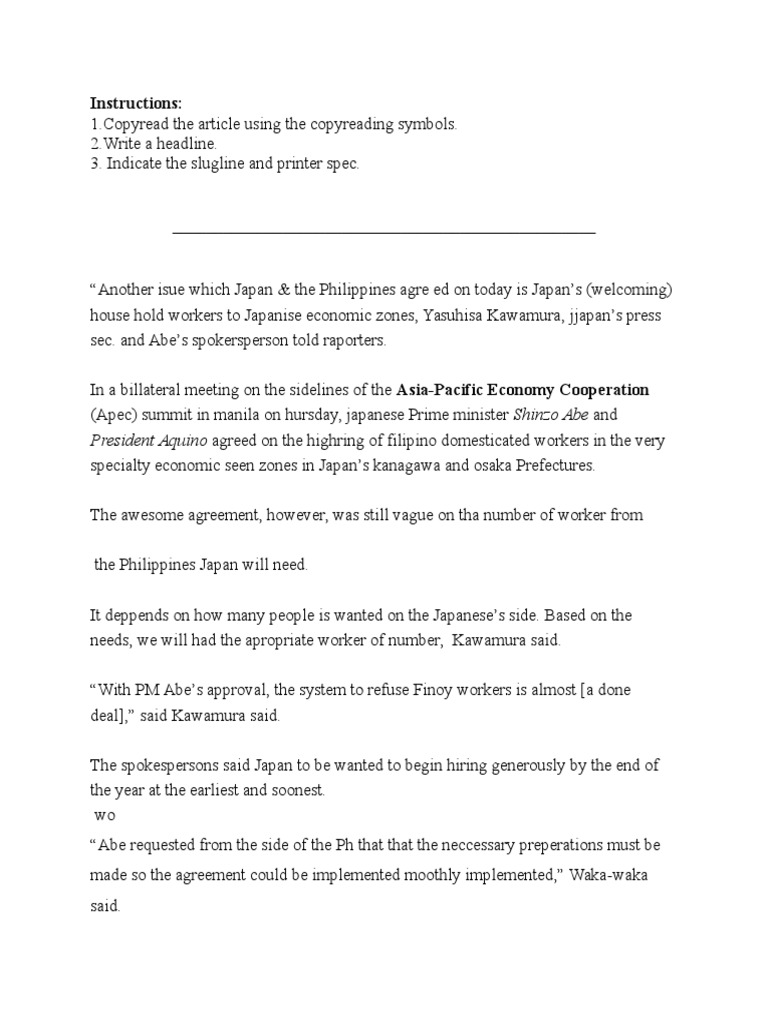 1.Copyread the article using the copyreading symbols.