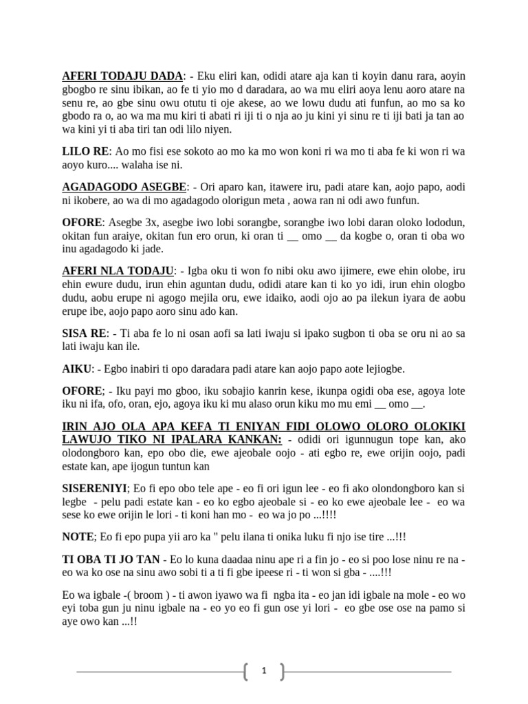 ISORI: - Afomo igi abo, irun aya abo oya, a lo po, a fi ida ahun pa ahun, eje e lama fi po