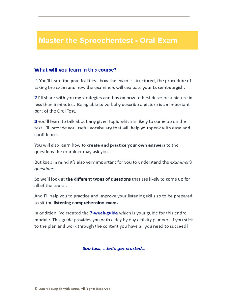 Comprehension Test. In this Lesson you will learn about the contents of the Sproochentest,