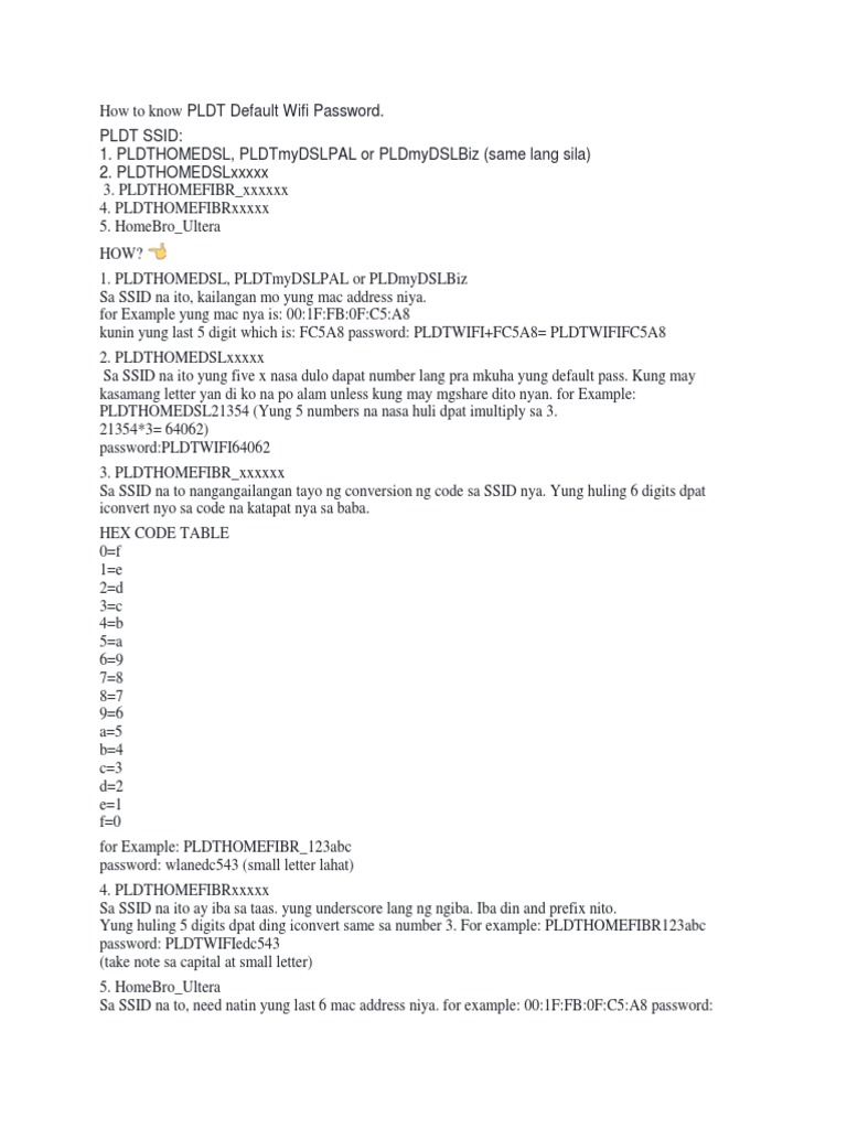 PLDT Default Wifi Password. PLDT Ssid: 1. Pldthomedsl, Pldtmydslpal or Pldmydslbiz (Same Lang Sila) 2. Pldthomedslxxxxx
