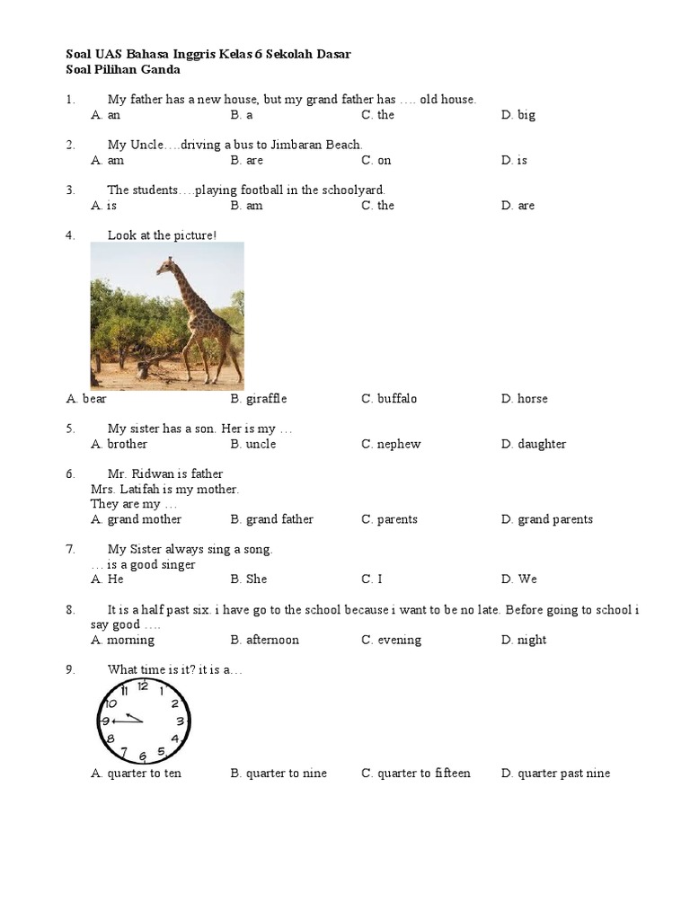 Soal UAS Bahasa Inggris Kelas 6 Sekolah Dasar