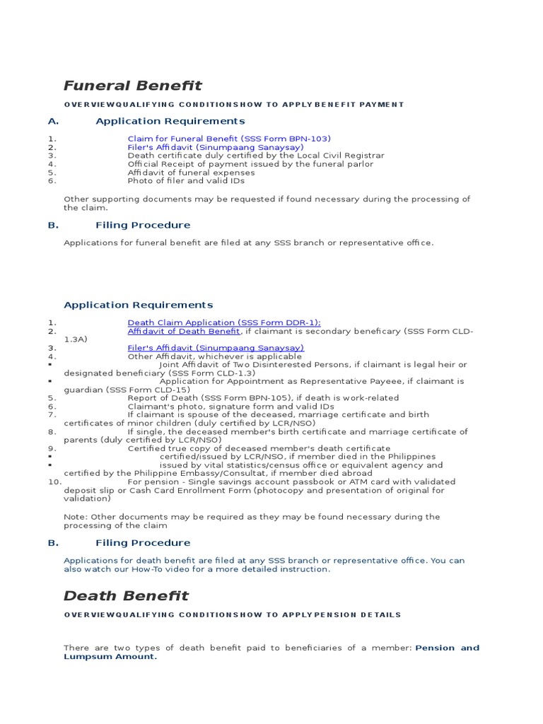 Sss Death Claim Requirements